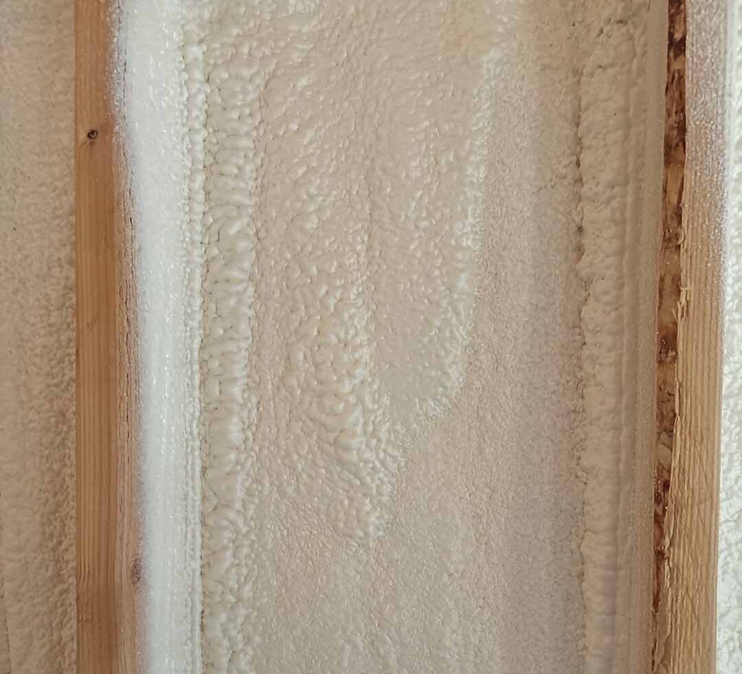 Close-up view of closed-cell SWD QUIK-SHIELD HYDRA-XC applied evenly between wall studs.