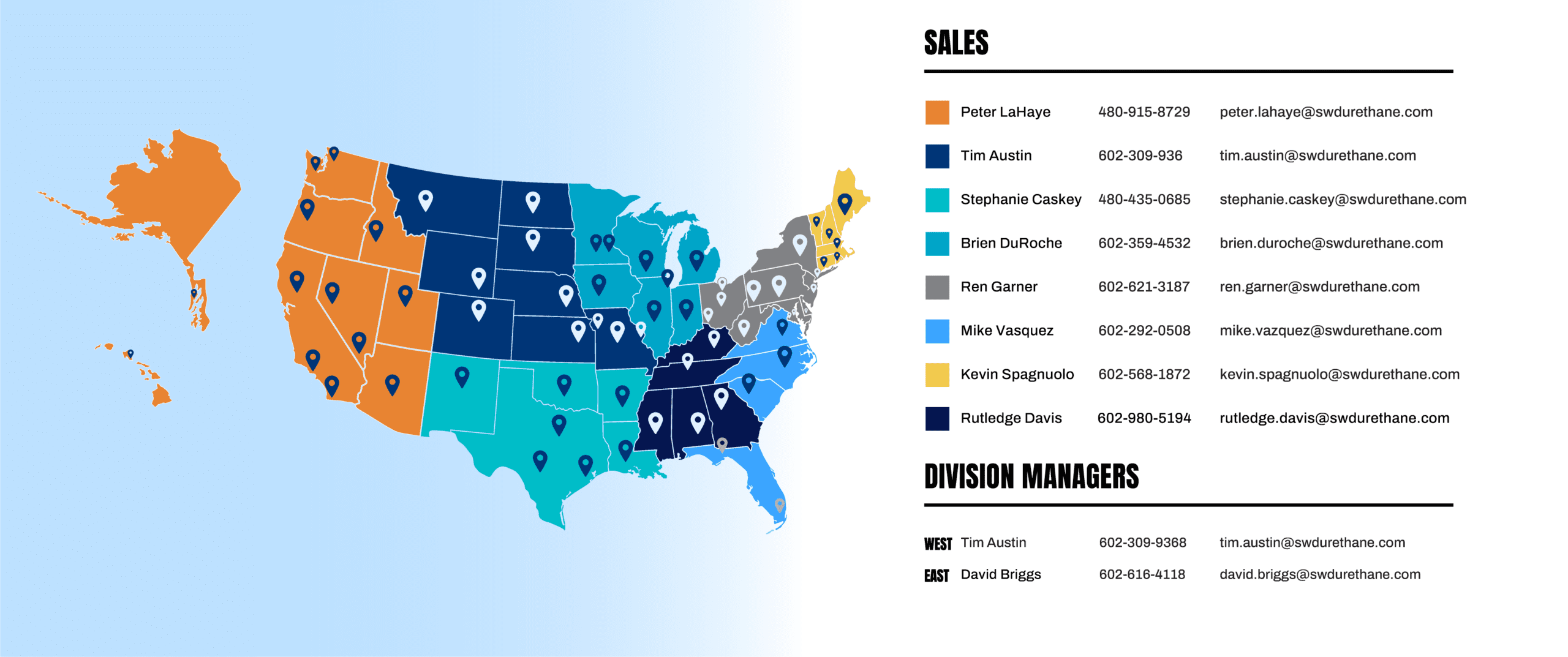 Looking to get started with SWD? Use the map below to connect with your local sales rep. Whether you’re new to spray foam or ready to take the next step, our team is here to help – with product answers, pricing, and real support from people who know the job. We’re ready when you are.